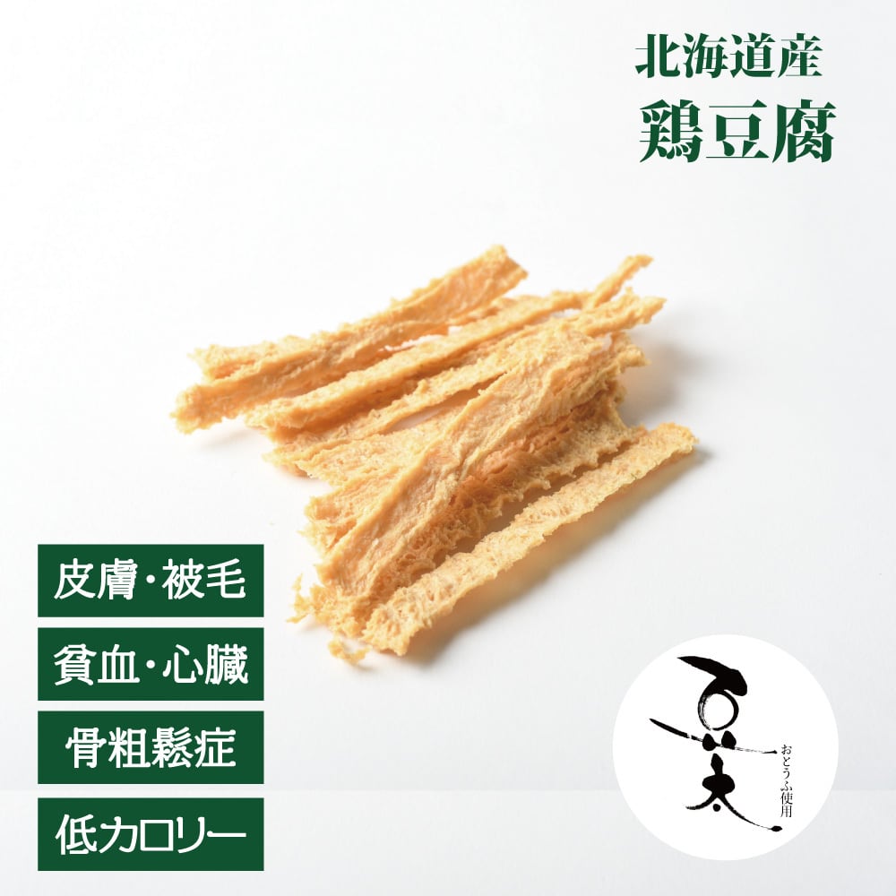 【カロリーが気になる子に】【おとうふ豆太コラボ】北海道産 鶏豆腐ジャーキー(植物発酵酵素+たもぎ茸配合) 無添加・無着色 【犬・猫用】