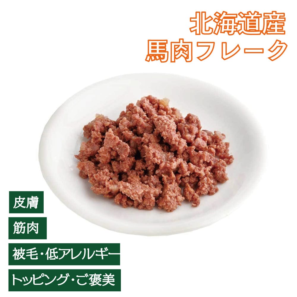 手作りごはんサポート! 北海道産の新鮮な馬肉を使用した、無添加・無着色のフレークです。大切なペットの健康と幸せを考えた、栄養豊富で美味しいごはんサポートです。
