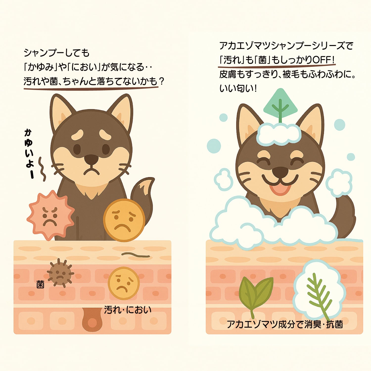 皮膚・臭い・ふけ・毛のベタつきが気になる子にアカエゾマツシャンプー