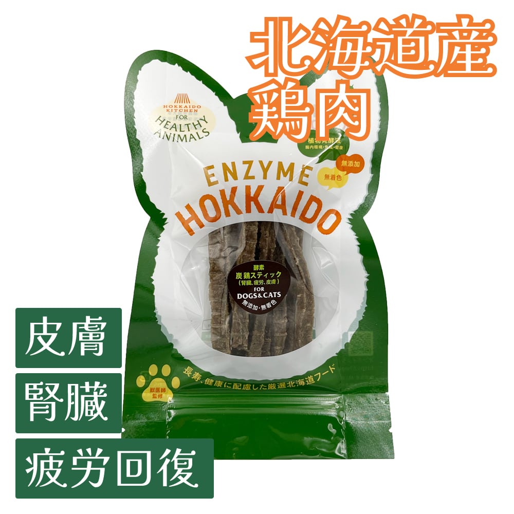 【腎臓サポート】北海道産 炭入り鶏スティックジャーキー(植物発酵酵素+たもぎ茸配合) 無添加・無着色 【犬・猫用】